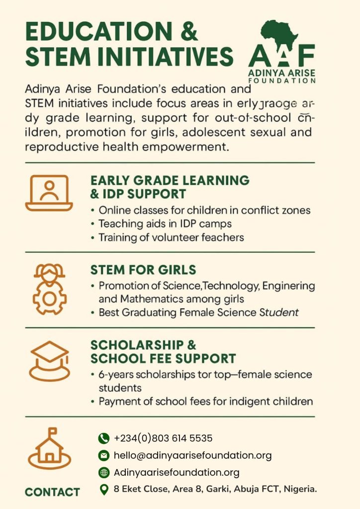 We always look forward to working witht you to achieve our goals. hello@adinyaarisefoundation.org